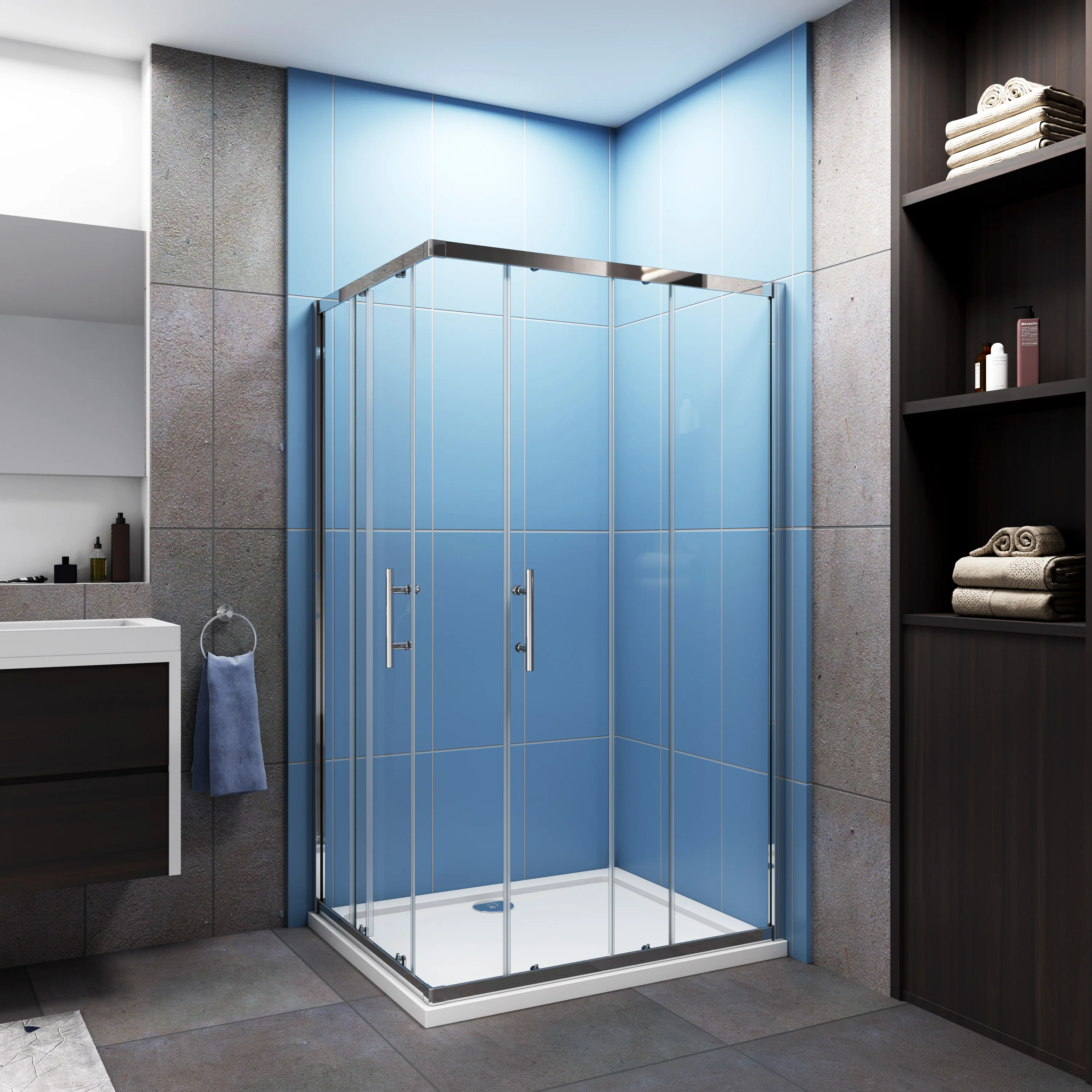 195 cm de altura Mampara Esquinera Puertas Correderas Antical 6mm Cromado